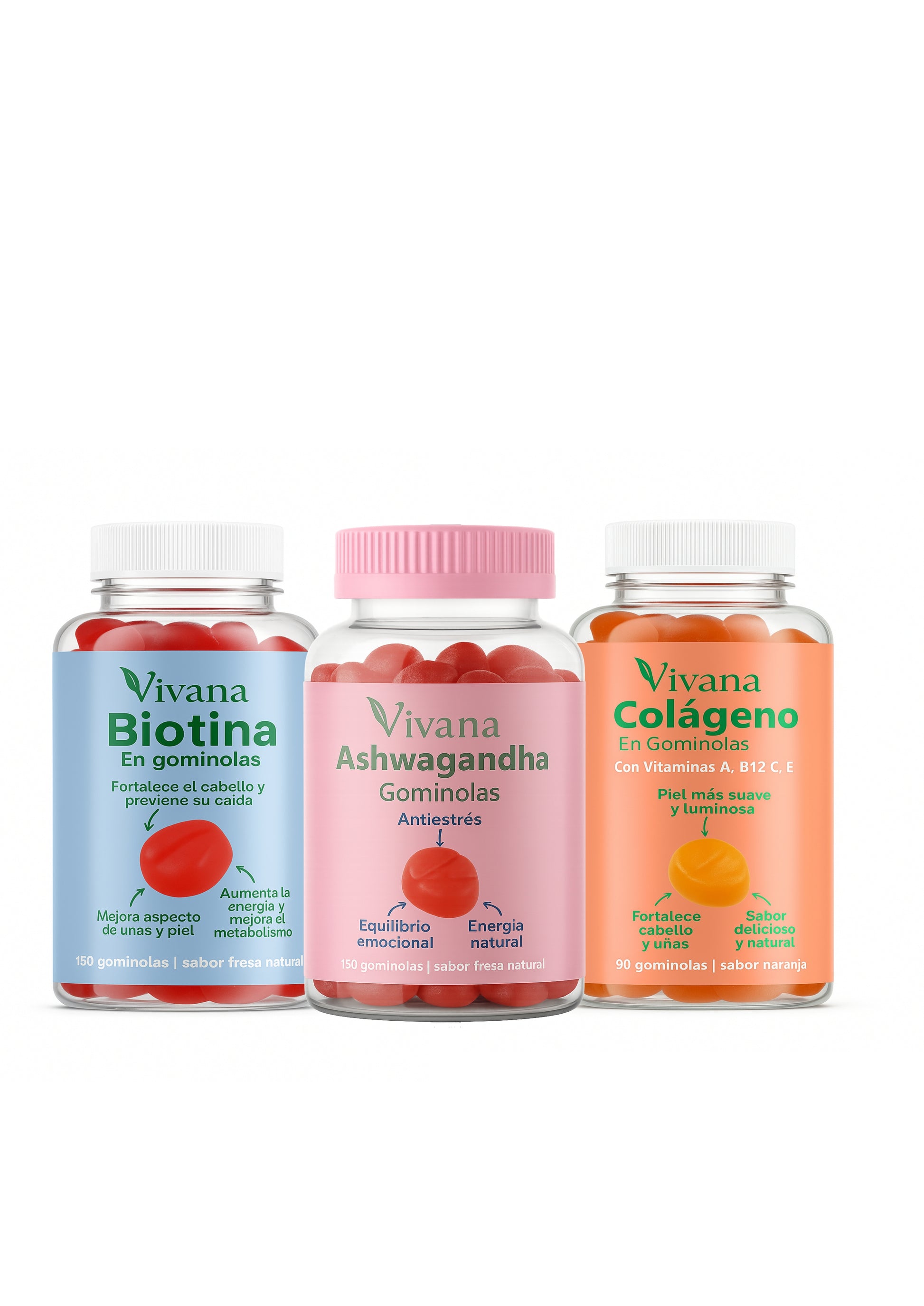 Jarabe de glucosa, azúcar, colágeno bovino, agua, almidón, gelatina (agente gelificante), ácido L-ascórbico, jarabe de sorbitol, maltodextrina, ácido cítrico (acidulante), acetato de DL-α tocoferilo (vitamina E), extracto de pimentón (colorante natural), aroma natural de naranja, aceite de coco (recubrimiento oleoso), cianocobalamina (vitamina B12), acetato de retinilo (vitamina A), clorhidrato de piridoxina (vitamina B6), cera de carnauba (agente de glaseado), selenito de sodio, D-biotina.